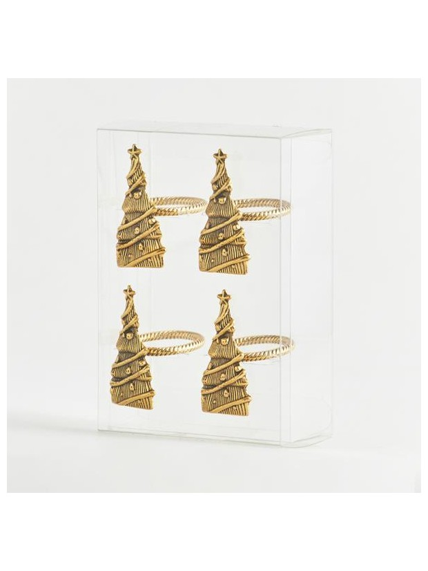 Δαχτυλιδι Πετσετας, Μεταλλικο, με Χρυσο Δεντρακι, σετ 4τμχ