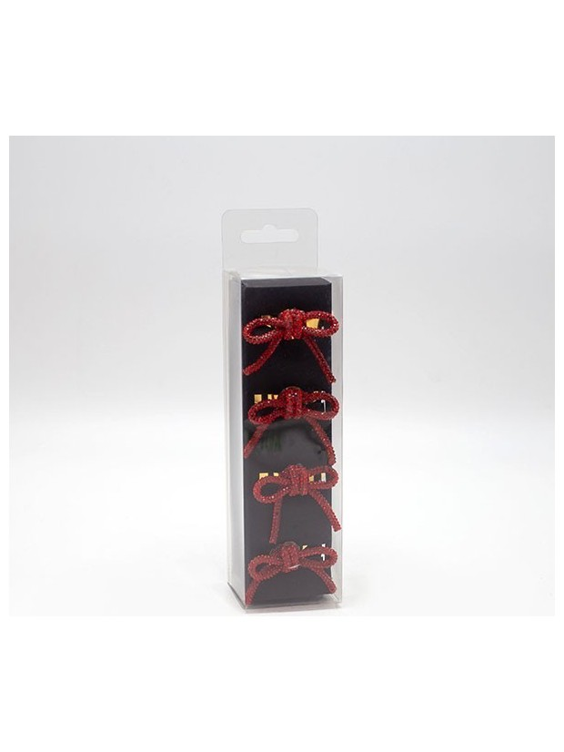 Δαχτυλιδια Πετσετας, Μεταλλικα, Φιογκος Κοκκινος με Στρας, σετ 4τμχ, 5x4x4.5cm