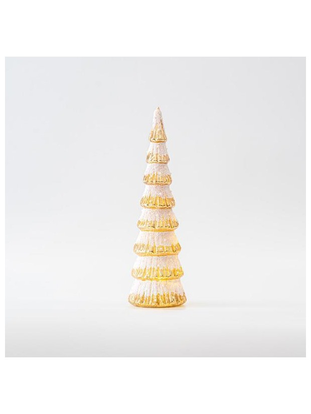 Δεντρακι Γυαλινο, Χρυσο με Λευκο Glitter, Φωτιζομενο, Μπαταριας, 8,5x28cm