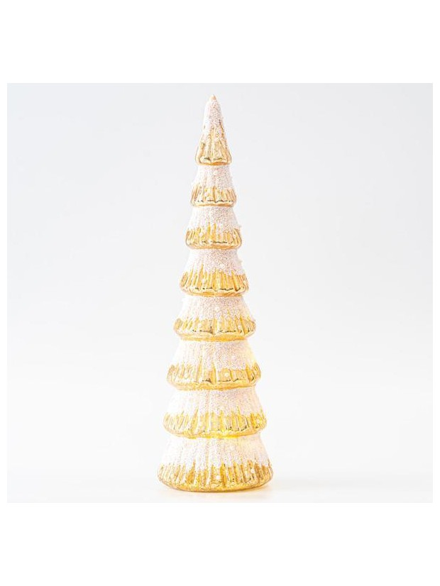 Δεντρακι Γυαλινο, Χρυσο με Λευκο Glitter, Φωτιζομενο, Μπαταριας, 8,5x36cm