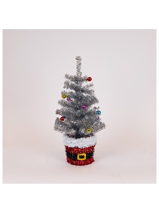 Δεντρακι Στολισμενο με Βαση αη Βασιλης, Ασημι, 45cm