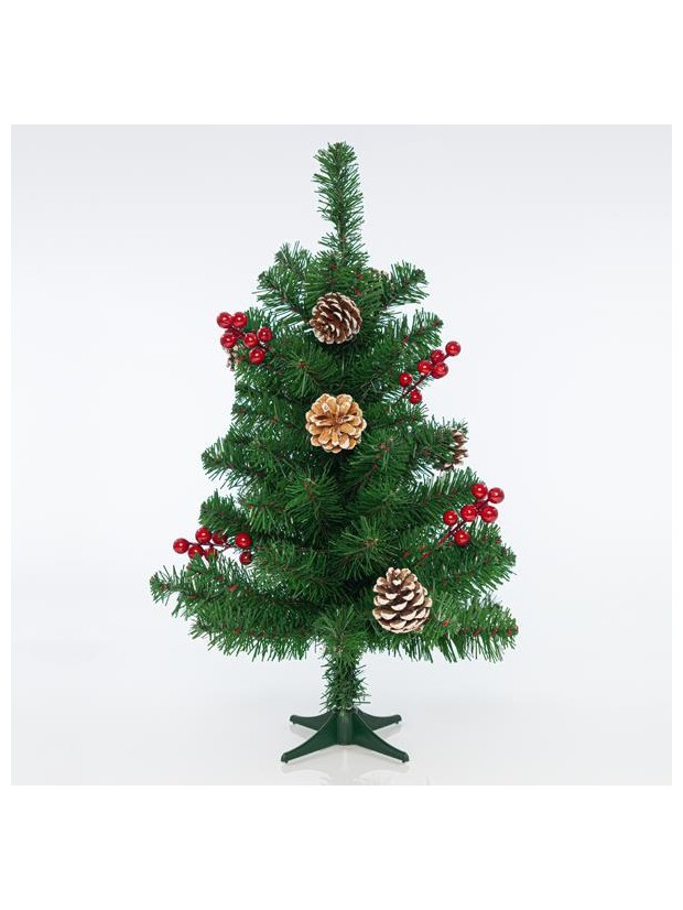 Δεντρο 60cm, με Χιονισμενες Κουκουναρες και Berries, 70 Tips (Παχος των Tips 6cm), Πρασινο Χρωμα