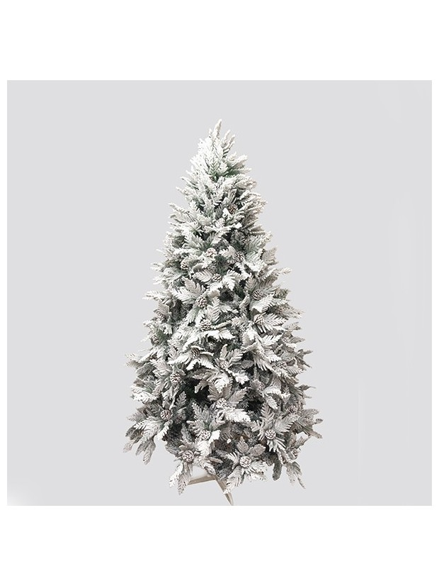 Δεντρο Ελατο, Mixed pvc με Πλαστικο και Κουκουναρια, Χιονισμενο, Κλειω 210cm