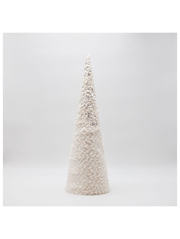 Δεντρο Κωνος με Λευκο Γουνακι και Γκλιτερ, 52cm
