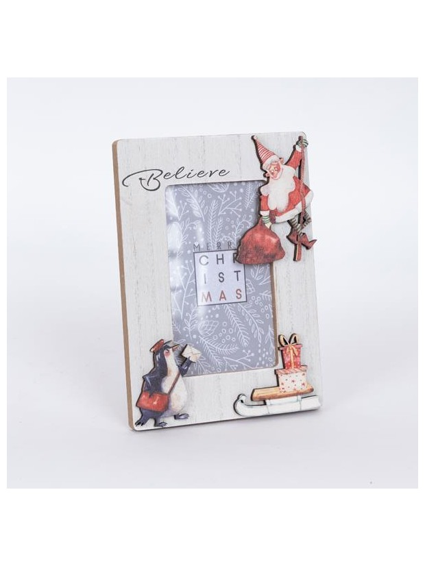 Διακοσμητικη Κορνιζα με Αγιο Βασιλη και Πιγκουινο, Λευκη, 1.2x13x18cm