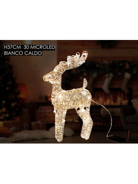 Διακοσμητικό φωτιζόμενο ελαφάκι με 30 λαμπάκια λεντ με ύψος 37cm σε λευκό ζεστό χρώμα