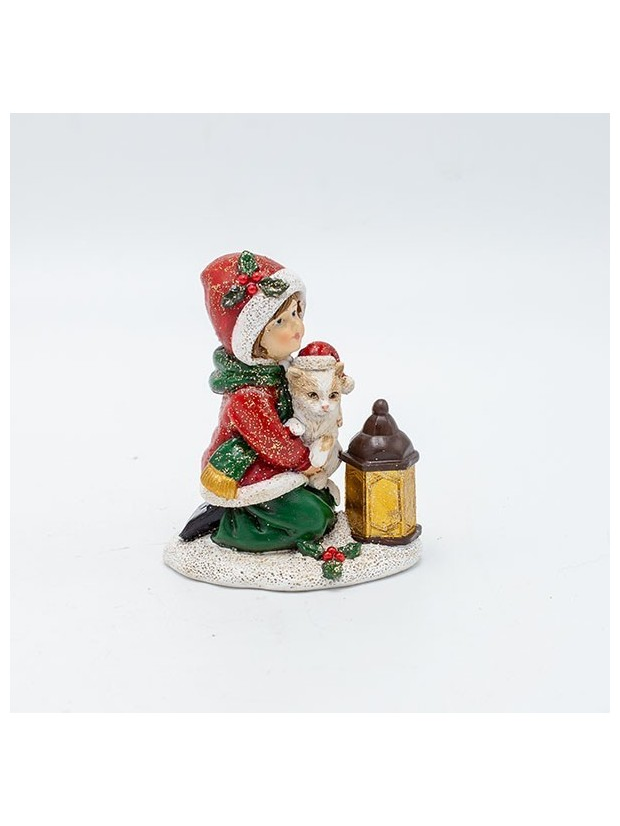 Διακοσμητικο Πολυρεζιν, Κοριτσακι με Γατουλα, Απαλο Ροζ, 7.5x9cm