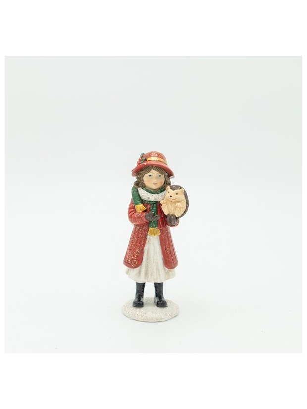 Διακοσμητικο Πολυρεζιν, Κοριτσακι με Σκαντζοχοιρο, Κοκκινο, 5x13cm
