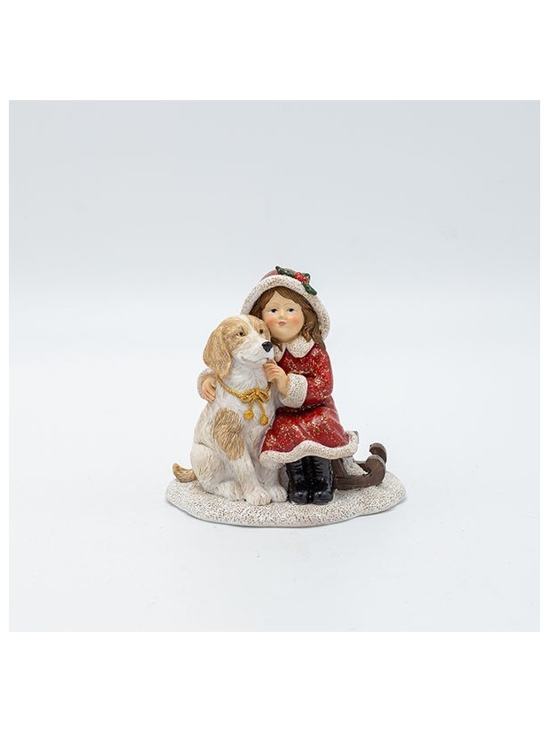 Διακοσμητικο Πολυρεζιν, Κοριτσακι με Σκυλακι, Απαλο Ροζ, 10x10cm