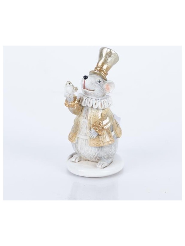 Διακοσμητικο Πολυρεζιν, Ποντικακι με Πουλακι, Σαμπανι, 5.5x7.5x11cm