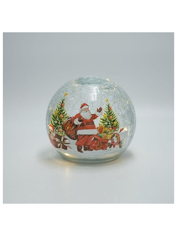 Επιτραπεζια Φωτιζομενη Γυαλινη Μπαλα, Κρακελε, με Αγιο Βασιλη, Μπαταριας, Timer, 14cm