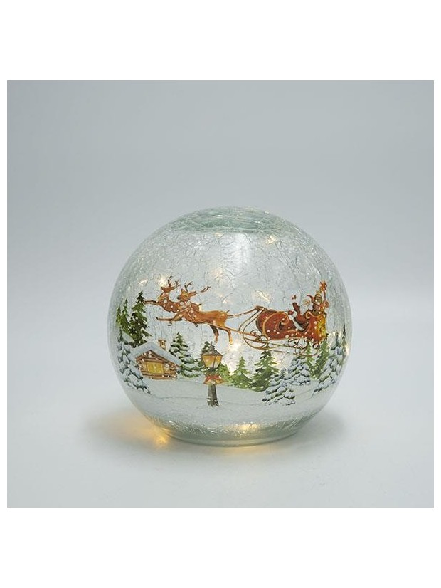 Επιτραπεζια Φωτιζομενη Γυαλινη Μπαλα, Κρακελε, με Χριστουγεννιατικη Παρασταση, Μπαταριας, Timer, 14cm