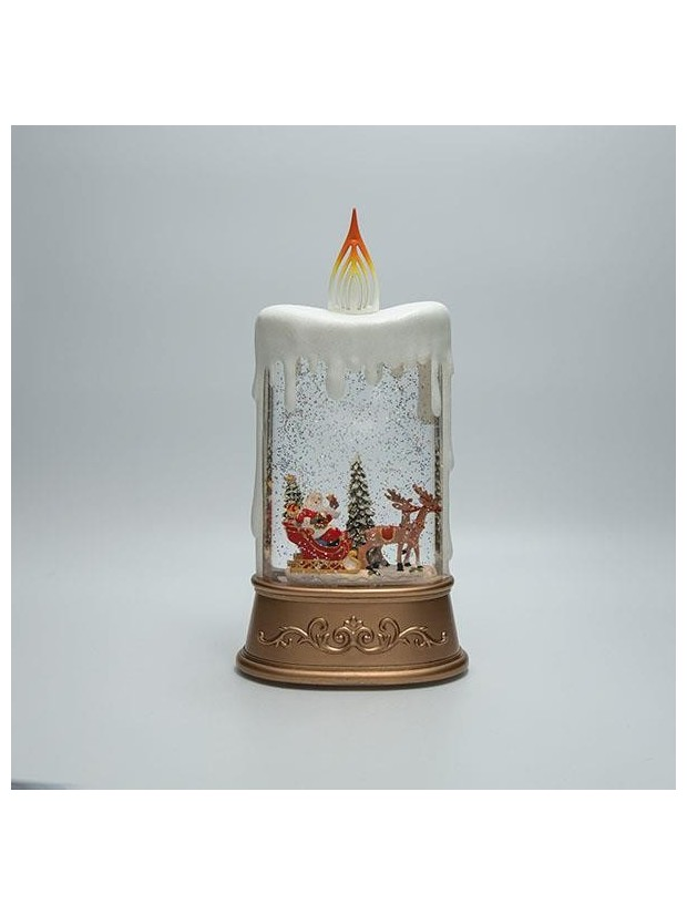 Επιτραπεζιο Διακοσμητικο σε Σχημα Κεριου, με Αγιο Βασιλη και Ελκυθρο, με Νερο στο Εσωτερικο, Φωτιζομενο, Μπαταριας, Timer, 15.5x9.5x30cm