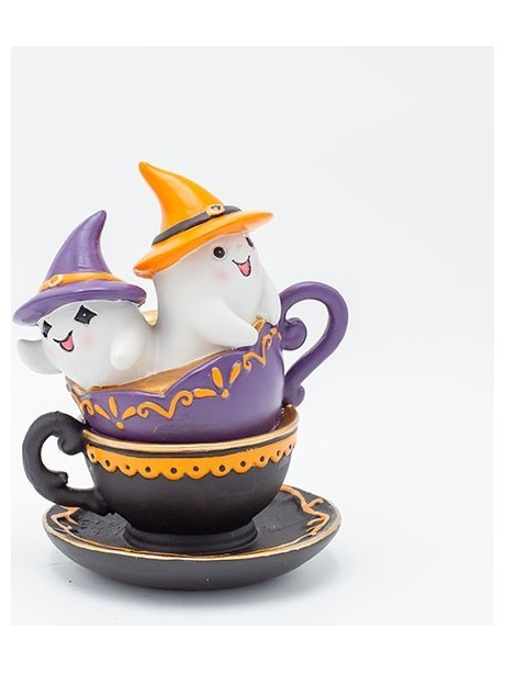 Φαντασματακια με Πορτοκαλι και Μαυρο Καπελακι, σε Φλυτζανακια, Halloween, 14,5x12,7x17,5cm