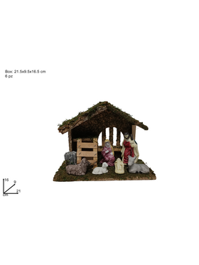 Φάτνη κεραμική με φιγούρες και χορταράκι 16x9x21cm