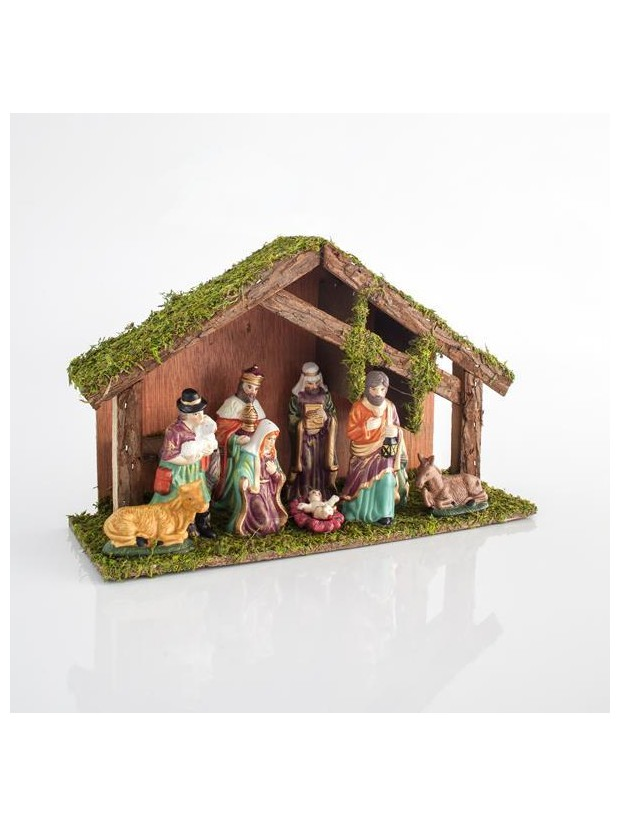 Φατνη Ξυλινη με 9 Πορσελανινες Φιγουρες, 35x12x22cm