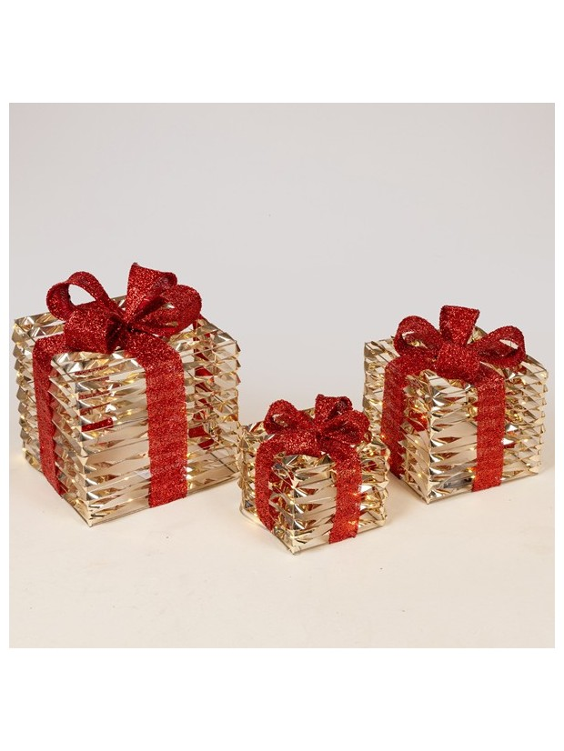 Φωτιζομενα Δωρα 15-20-25cm, 20/30/40 Led, Μπαταριας 2xaa/3xaa, Timer, Χρυσο me Kokkino Φιογκο, Θερμο Λευκο Mini Led, Ip20