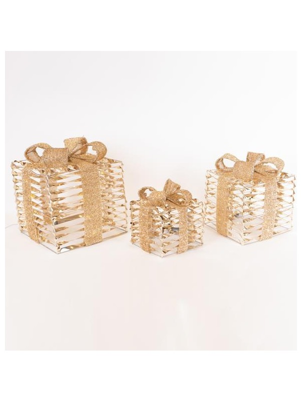 Φωτιζομενα Δωρα 15-20-25cm, Μπαταριας, Timer, Χρυσο Γυαλιστερο, Θερμο Λευκο Led, Ip20