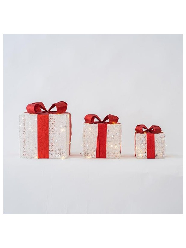 Φωτιζομενα Δωρα, Λευκα με Κοκκινη Κορδελα, 15-20-25cm