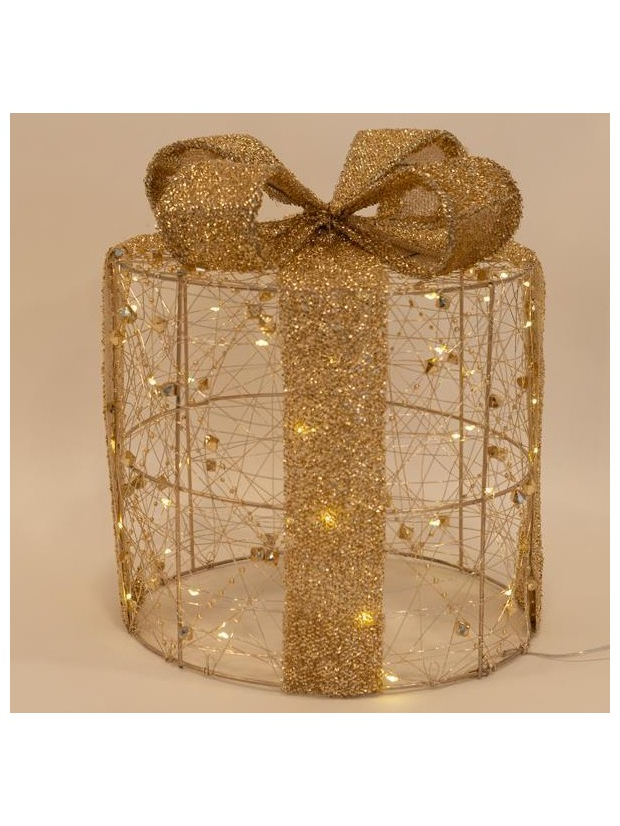 Φωτιζομενα Στρογγυλα Δωρα 15-20-25cm, Μπαταριας, Timer, Χρυσο με Περλες, Θερμο Λευκο Led, Ip20