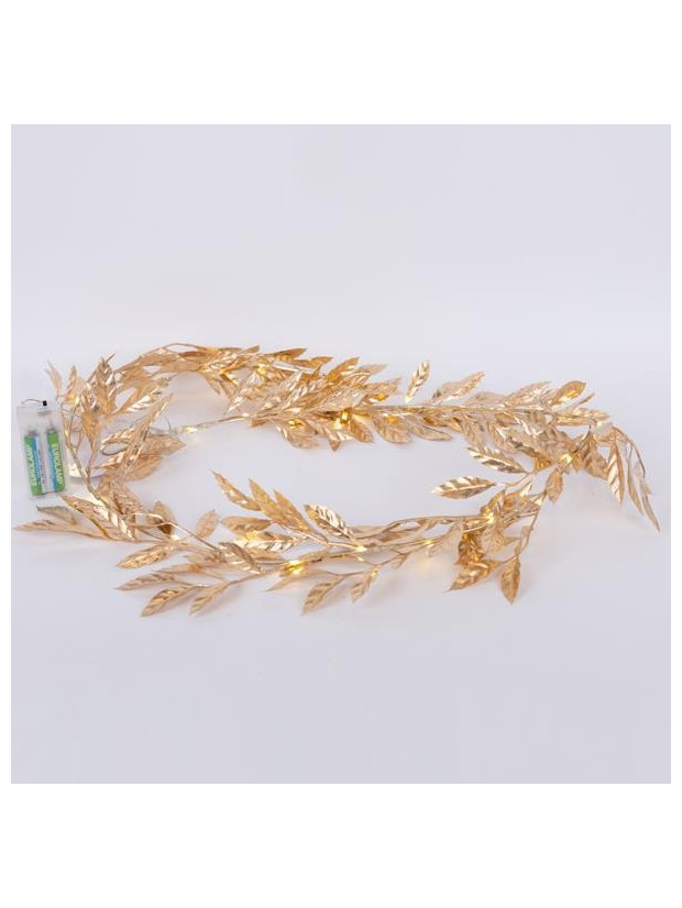 Φωτιζομενη Γιρλαντα me Χρυσα Φυλλα Ελιας 150cm, 30 Θερμα Λευκα Mini Led, Μπαταριας 2xaa, Προεκταση Παροχης 50cm, Ip20
