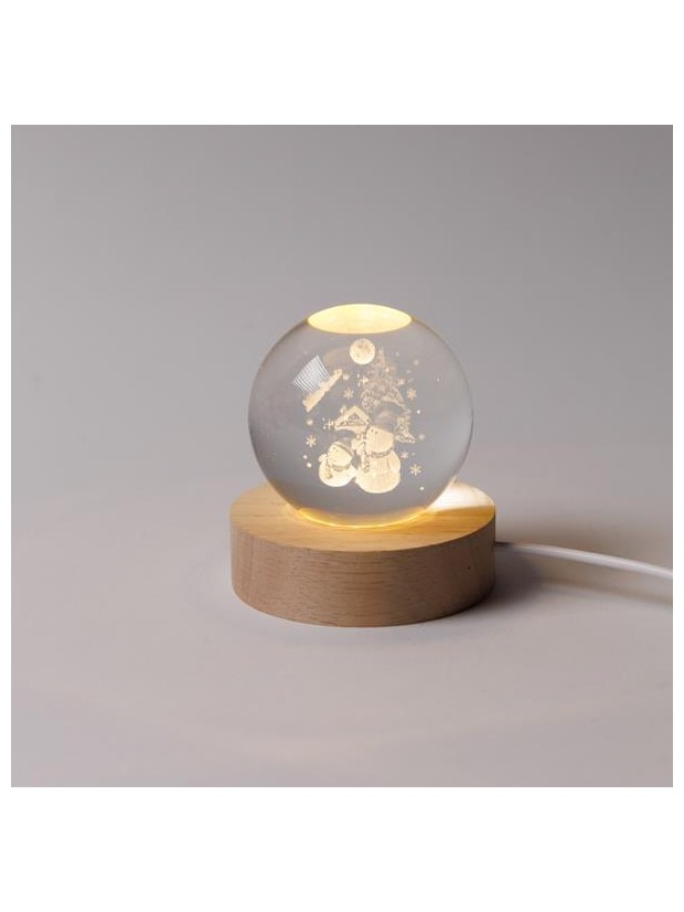 Φωτιζομενη Μπαλα 6cm, Χριστουγεννιατικη Σχεδιο, Χιονανθρωποι με Σπιτακι και Δεντρο, Usb, 6 Θερμα Λευκα smd Led, Bαση 7cm, Προεκταση Παροχης 70cm, Ip20