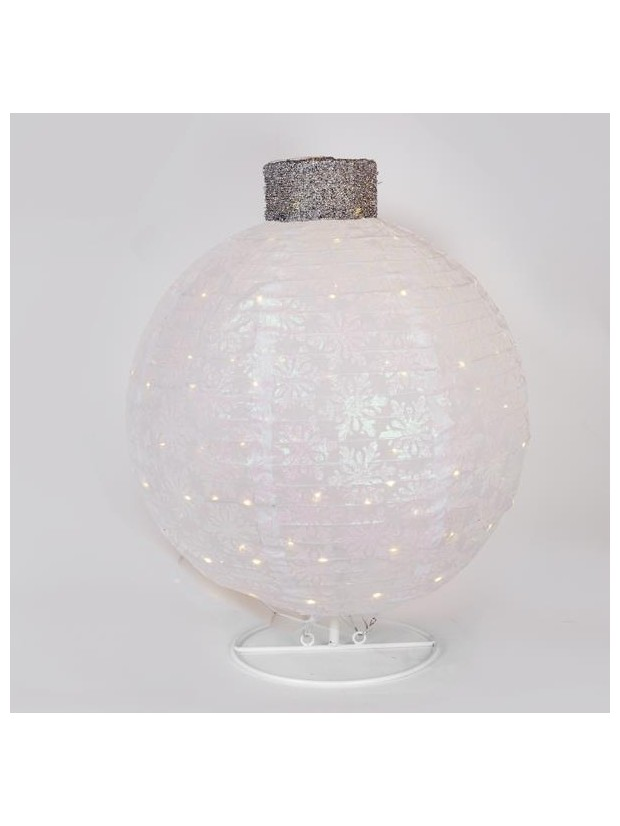 Φωτιζομενη Χριστουγεννιατικη Λευκη Mπαλα, με Βαση, 4,5v Μετασχηματιστη, 50 Θερμα Λευκα Mini Led, 45x45x60cm, Προεκταση Παροχης 3m, Ip44