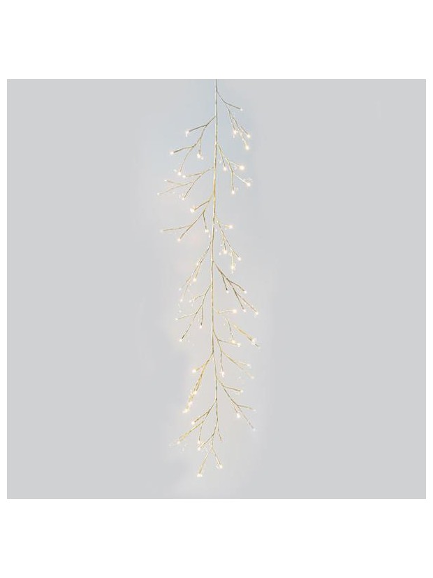 Φωτιζομενο Κλαδι με Κρυσταλλακια, 60 Θερμα Λευκα Led, Σαμπανι, Μπαταριας, με Timer, 150cm