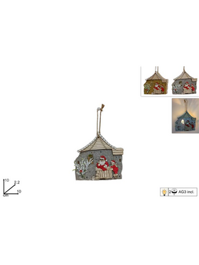 Φωτιζόμενο κρεμαστό χριστουγεννιάττικο με σπιτάκι και Αη-Βασίλη σε γκρι χρώμα
