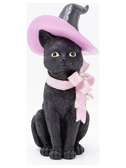 Γατουλα Μαγισσα Πολυρεζιν, με ροζ Φιογκο, Halloween, 15.3x14.5x29.8cm