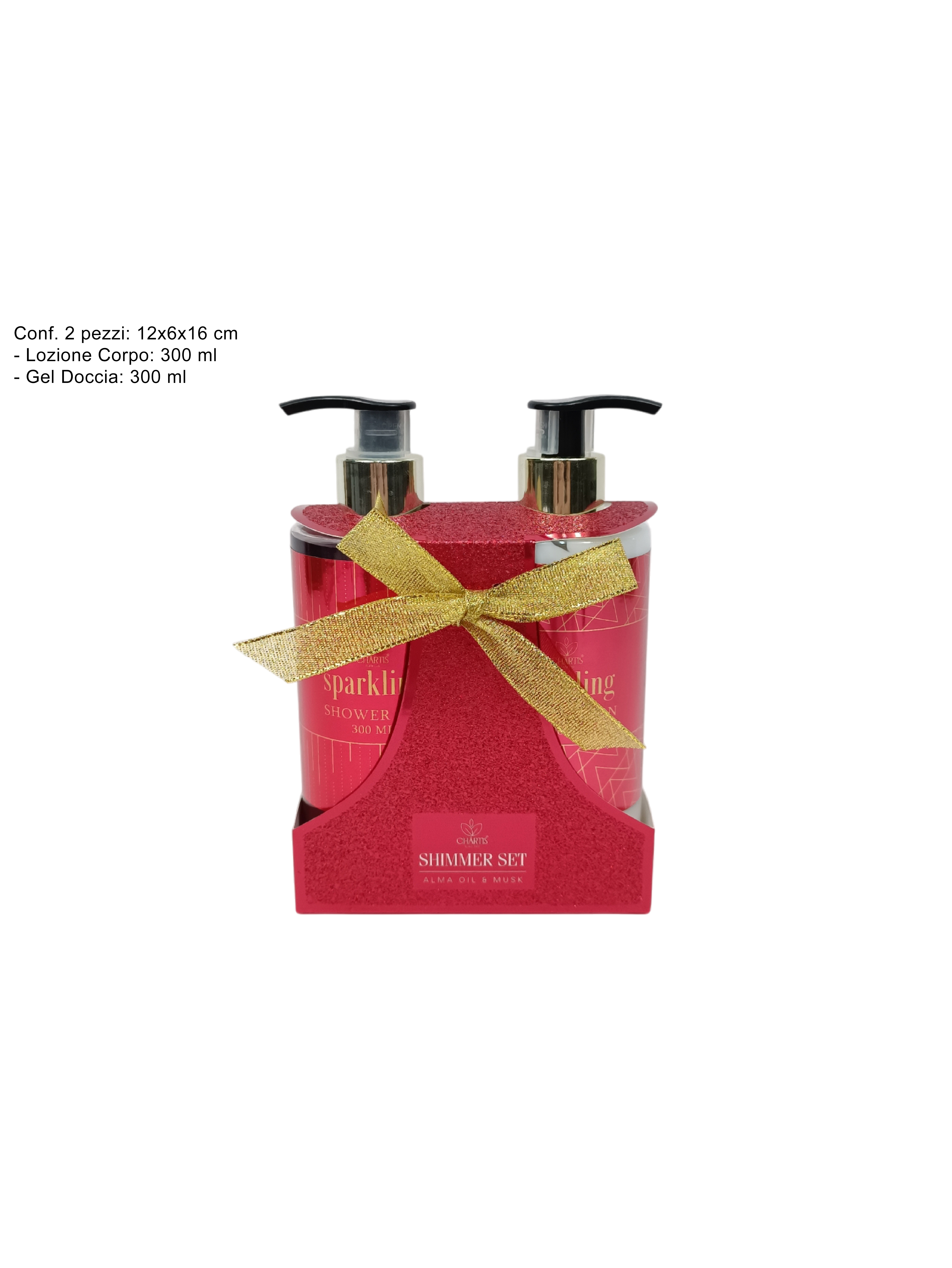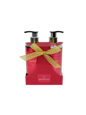 Γιορτινό σετ δώρου με 2 είδη μπάνιου με γκλίτερ σε κόκκινο χρώμα