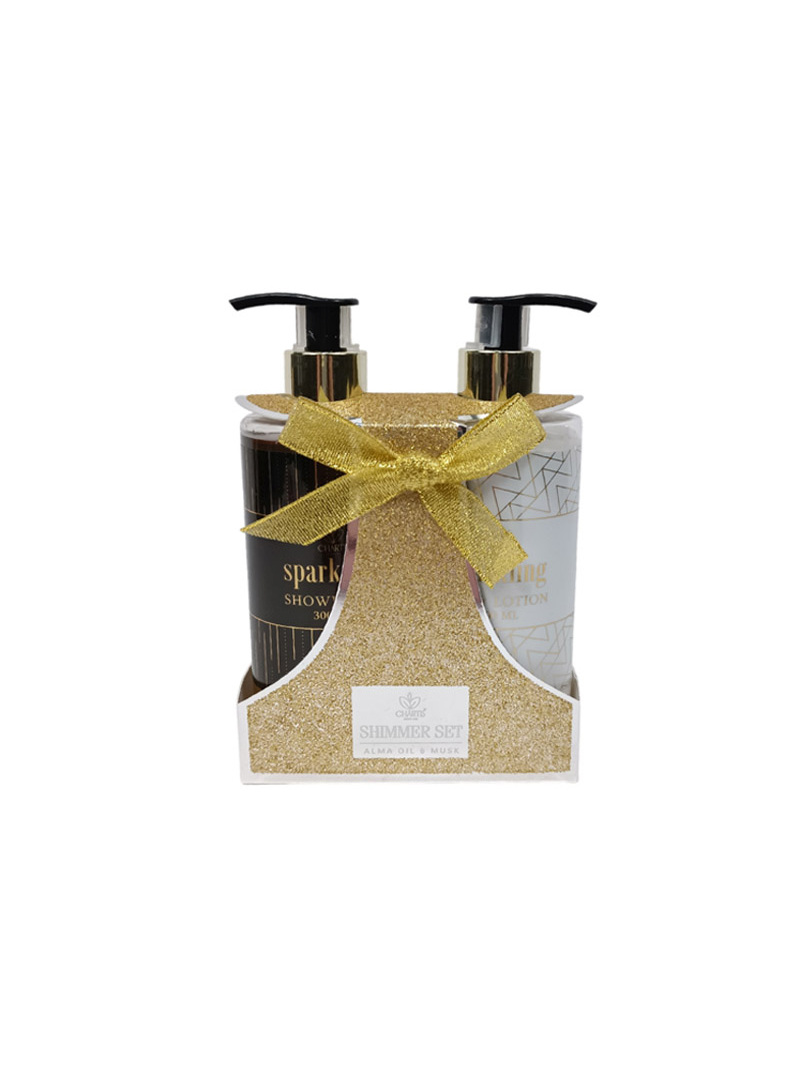Γιορτινό σετ δώρου με 2 είδη μπάνιου με γκλίτερ σε χρυσό χρώμα