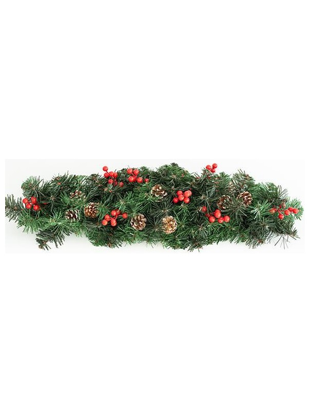 Γιρλαντα με Κλαδια Τοξο, με Χιονισμενες Κουκουναρες και Berries 80x22cm, 80 Tips (Παχος των Tips 8cm), Πρασινο Χρωμα