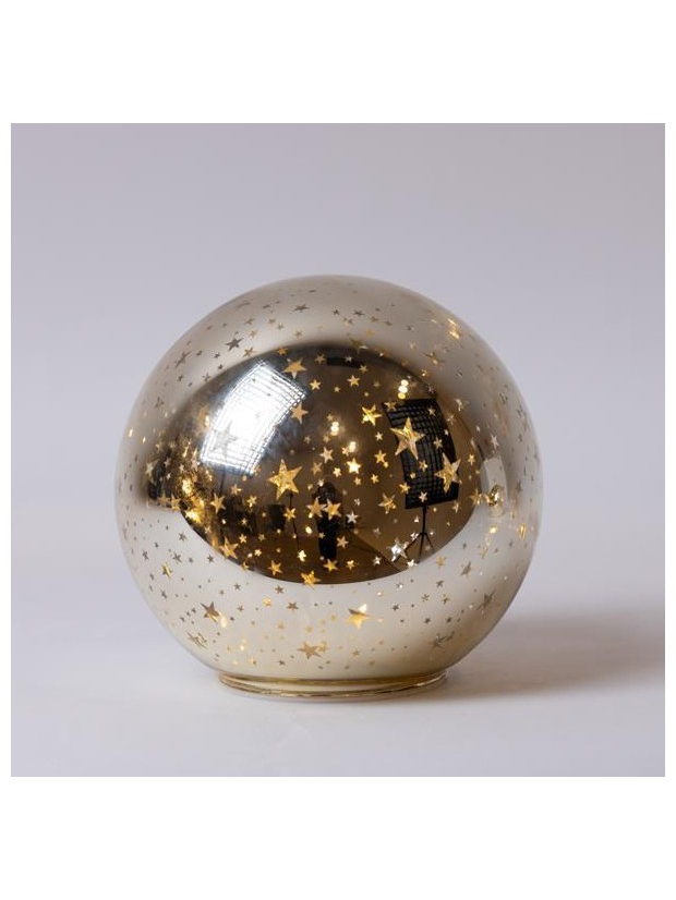 Γυαλινη Διακοσμητικη Μπαλα, Χρυση, Φωτιζομενη, με Αστερακια, 15cm