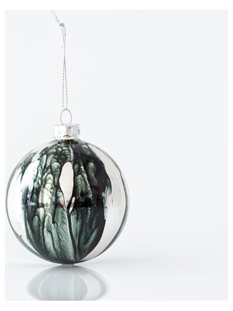 Γυαλινη Μπαλα, Ασημι, με Μαυρα Σχεδια, σετ 4τμχ, 8cm