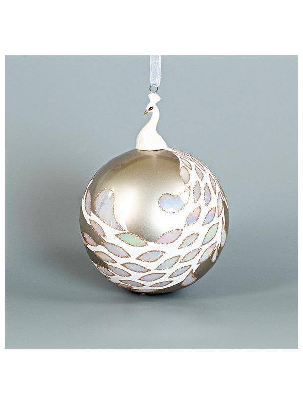 Γυαλινη Μπαλα, Ασημι με Πορσελανινο Παγωνι, 1τμχ, 10cm