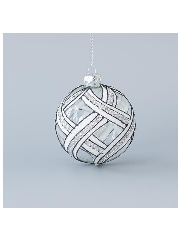 Γυαλινη Μπαλα, Ασπρομαυρη, με Ασημι Glitter, σετ 4τμχ, 8cm