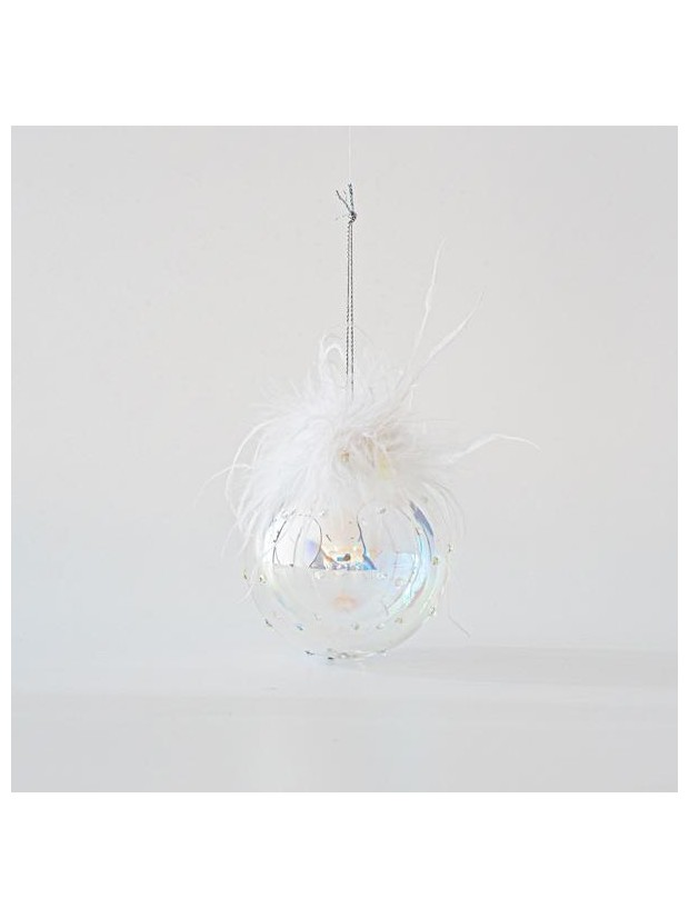 Γυαλινη Μπαλα Διαφανη, Αναγλυφη με Πουπουλα, σετ 4τμχ, 8cm