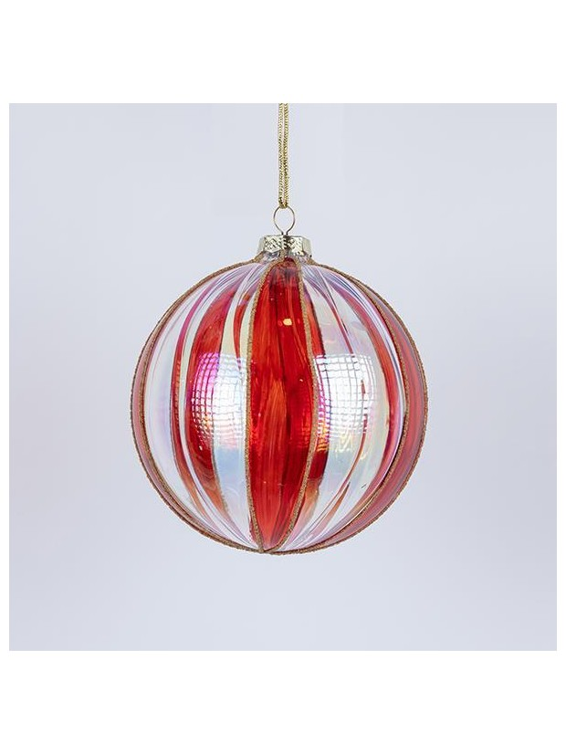Γυαλινη Μπαλα, Διαφανη Ιριδιζουσα με Κοκκινο, σετ 2τμχ, 12cm