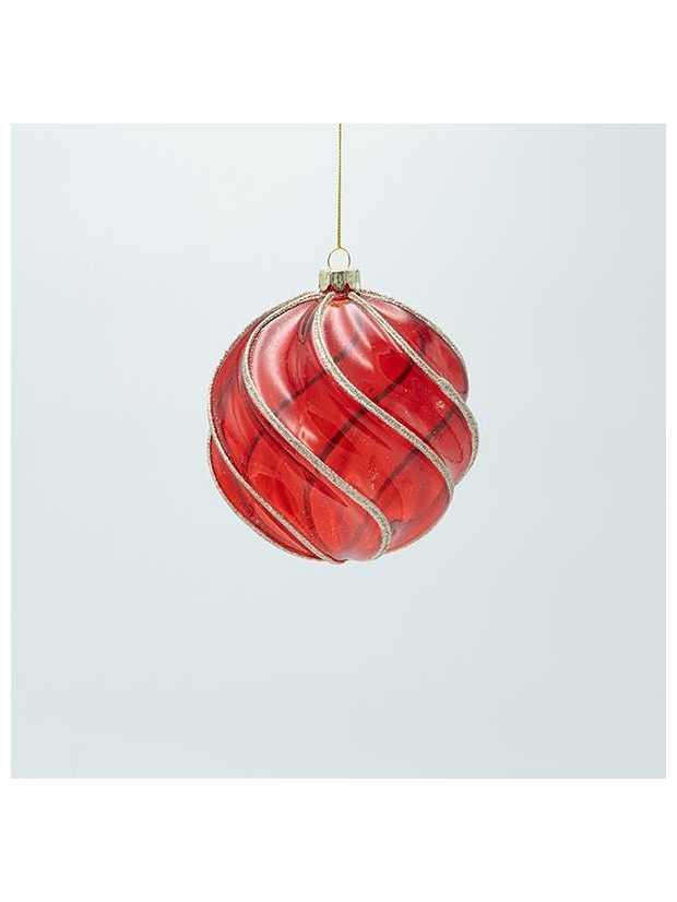 Γυαλινη Μπαλα, Κοκκινη Διαφανη με Χρυσο Glitter, σετ 2τμχ, 12cm