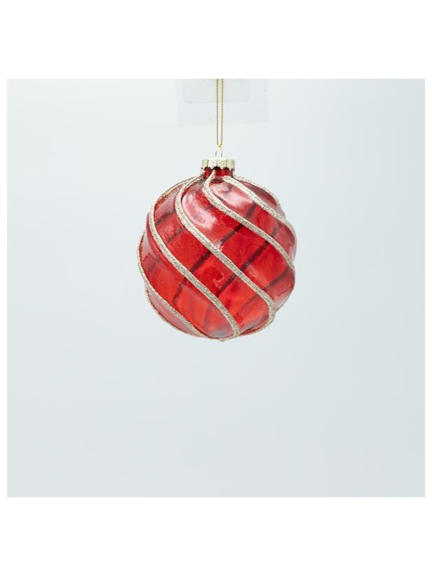Γυαλινη Μπαλα, Κοκκινη Διαφανη με Χρυσο Glitter, σετ 4τμχ, 10cm