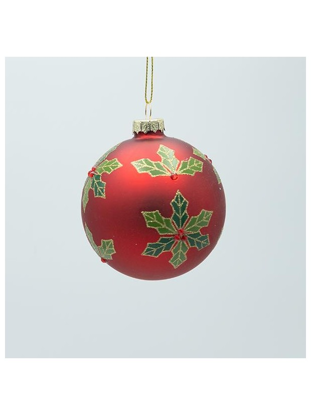 Γυαλινη Μπαλα, Κοκκινη ματ με Γκι, σετ 4τμχ, 8cm