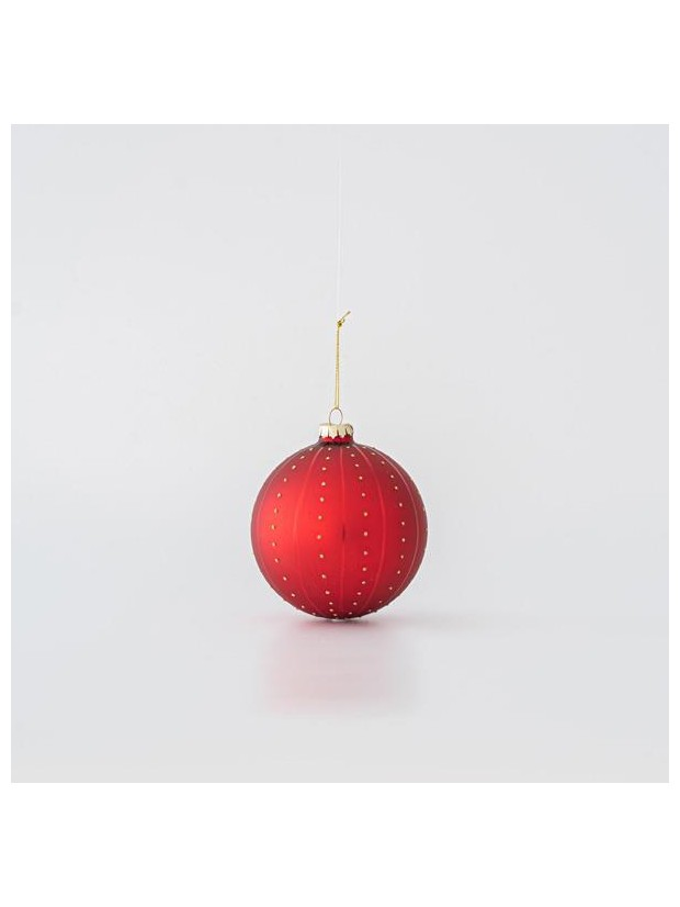 Γυαλινη Μπαλα, Κοκκινη Ματ, με Σχεδια, σετ 4τμχ, 10cm