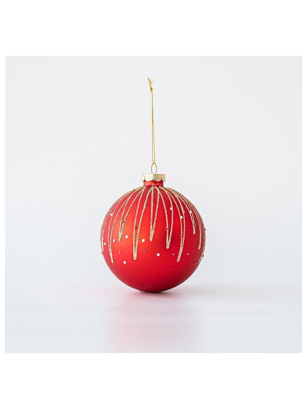 Γυαλινη Μπαλα, Κοκκινη με Σαμπανι Σχεδια Glitter, σετ 4τμχ, 10cm