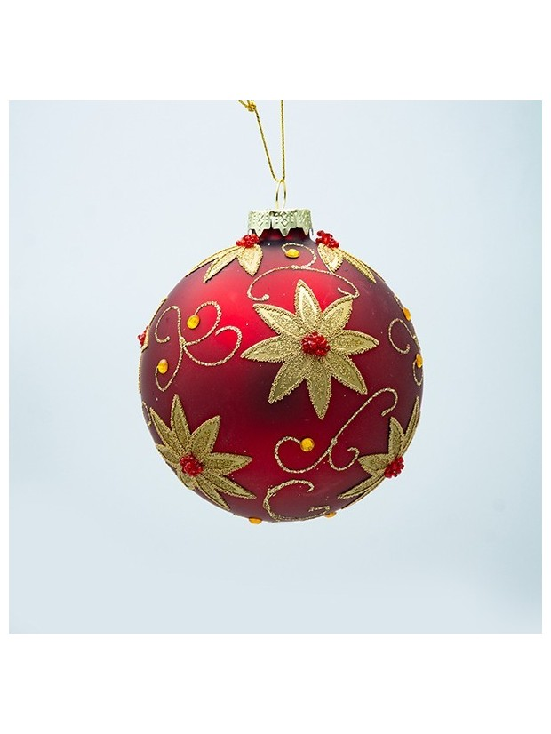 Γυαλινη Μπαλα, Κοκκινη με Χρυσα Αλεξανδρινα, σετ 4τμχ, 10cm