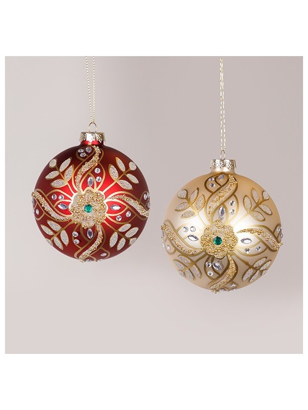 Γυαλινη Μπαλα, Κοκκινη Σαμπανι, με Χαντρες και Glitter, σετ 2τμχ, 10cm
