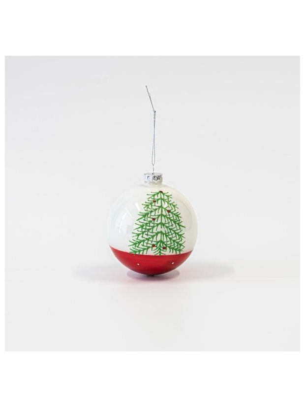 Γυαλινη Μπαλα, Λευκη-Κοκκινη, με Σχεδια Glitter, σετ 4τμχ, 10cm