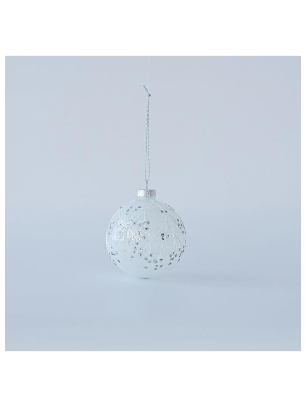 Γυαλινη Μπαλα, Λευκη με Λευκα Σχεδια, σετ 4τμχ, 10cm