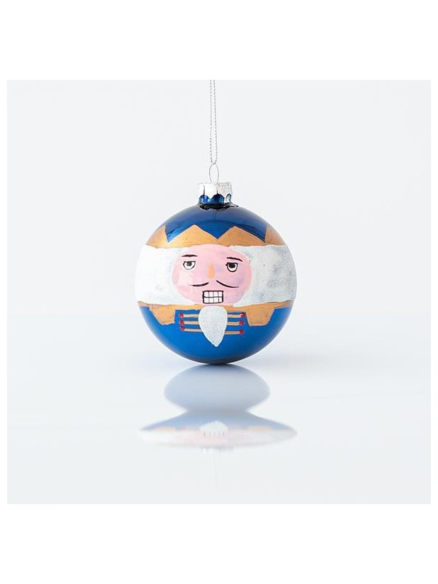 Γυαλινη Μπαλα, Μπλε, με Καρυοθραυστη, σετ 4τμχ, 8cm