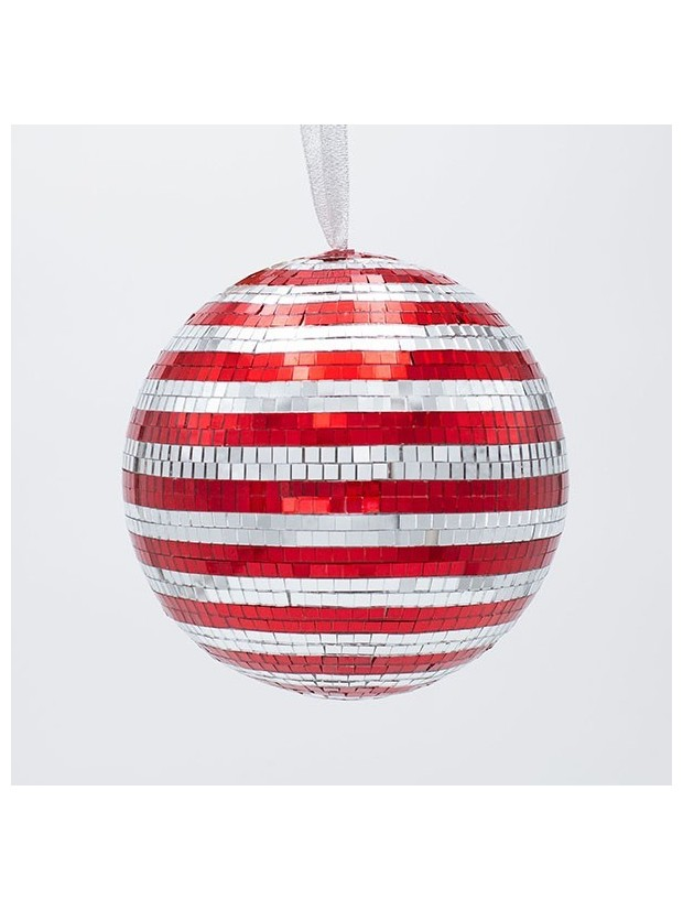 Γυαλινη Μπαλα, Ντισκο, Κοκκινη Ασημι, 14cm